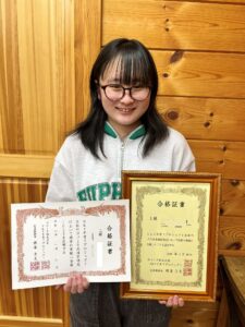小学生クラス:1月の検定で笑顔の表彰状